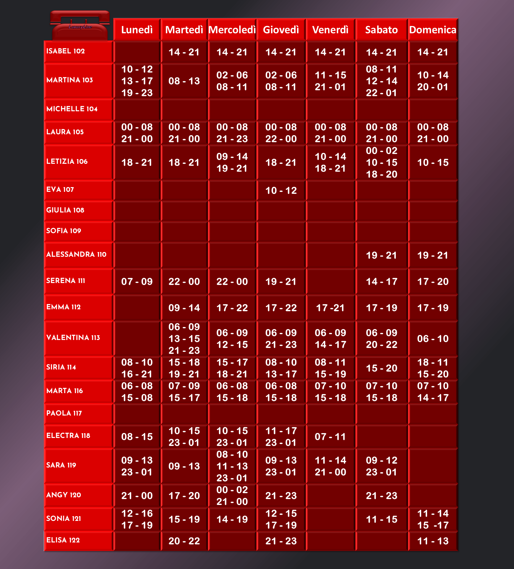 Sia lo staff che le ragazze sono a completa disposizione per qualsiasi info.